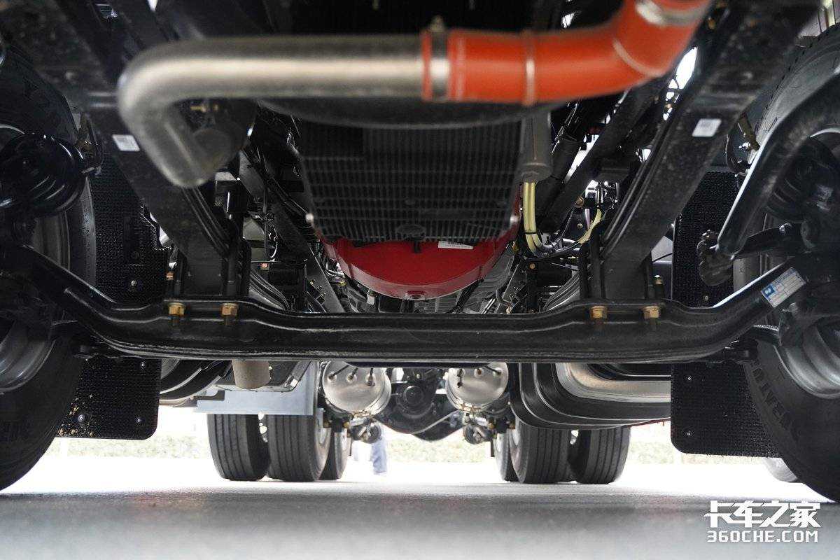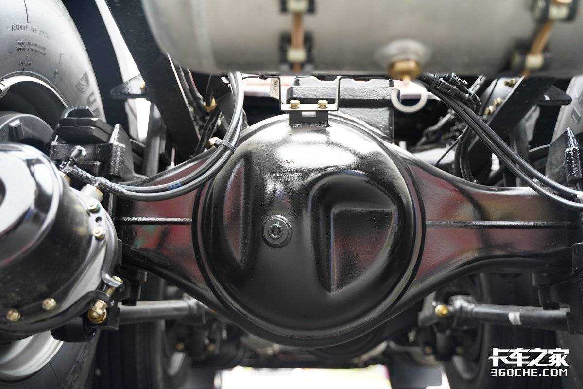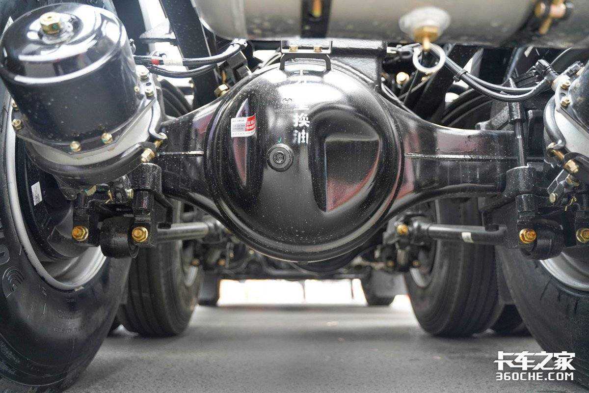 车桥方面,子母车的前后桥均采用了汉德车桥的产品,两车前桥为免维护前桥,后桥方面,母车采用了HDZ11T免维护后桥,实车后桥速比为3.7;为了满足子母车的运输需求,轩德翼3子车采用了HDZ11T免维护缩短桥,实车后桥速比同样为3.7。