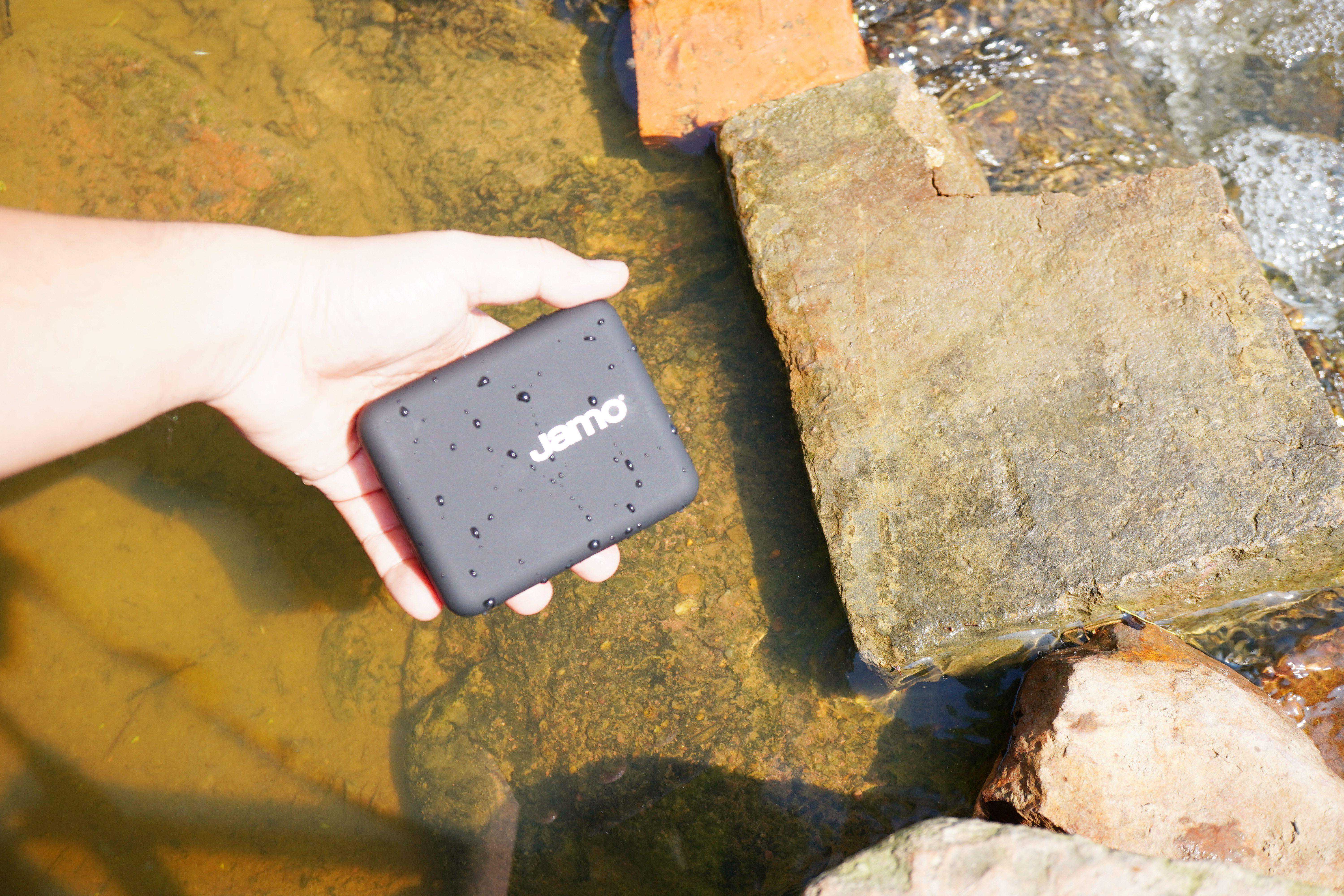 ▲JamoCub的防水等级为IPX5,啥意思呢?以水流量12.5L/min向外壳各方向喷水3min无影响。说得通俗点,就平时对着水龙头的简单冲洗是完全可以的,所以下雨天不必担心进水,但不适用于带去浸没游泳之类。