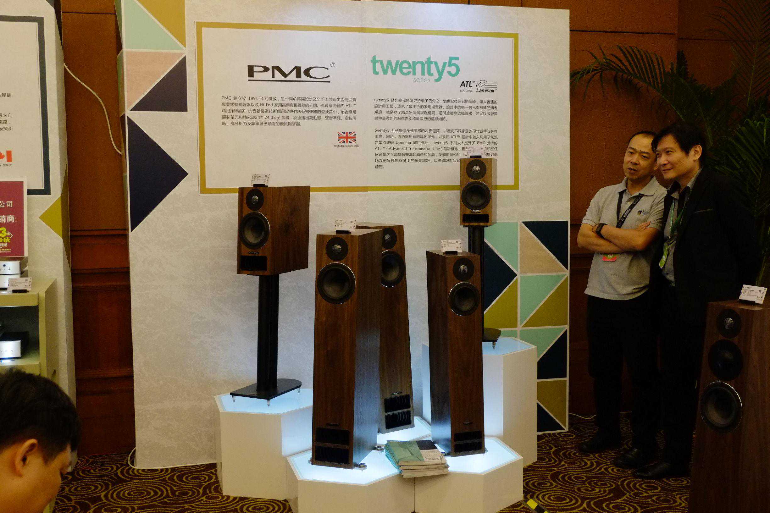 展会期间发布的PMCTwenty5系列扬声器新品。Twenty5系列作为PMC创立二十五周年的纪念系列,这次新汉建业展出了和5.22书架音箱、、、三款落地式音箱。