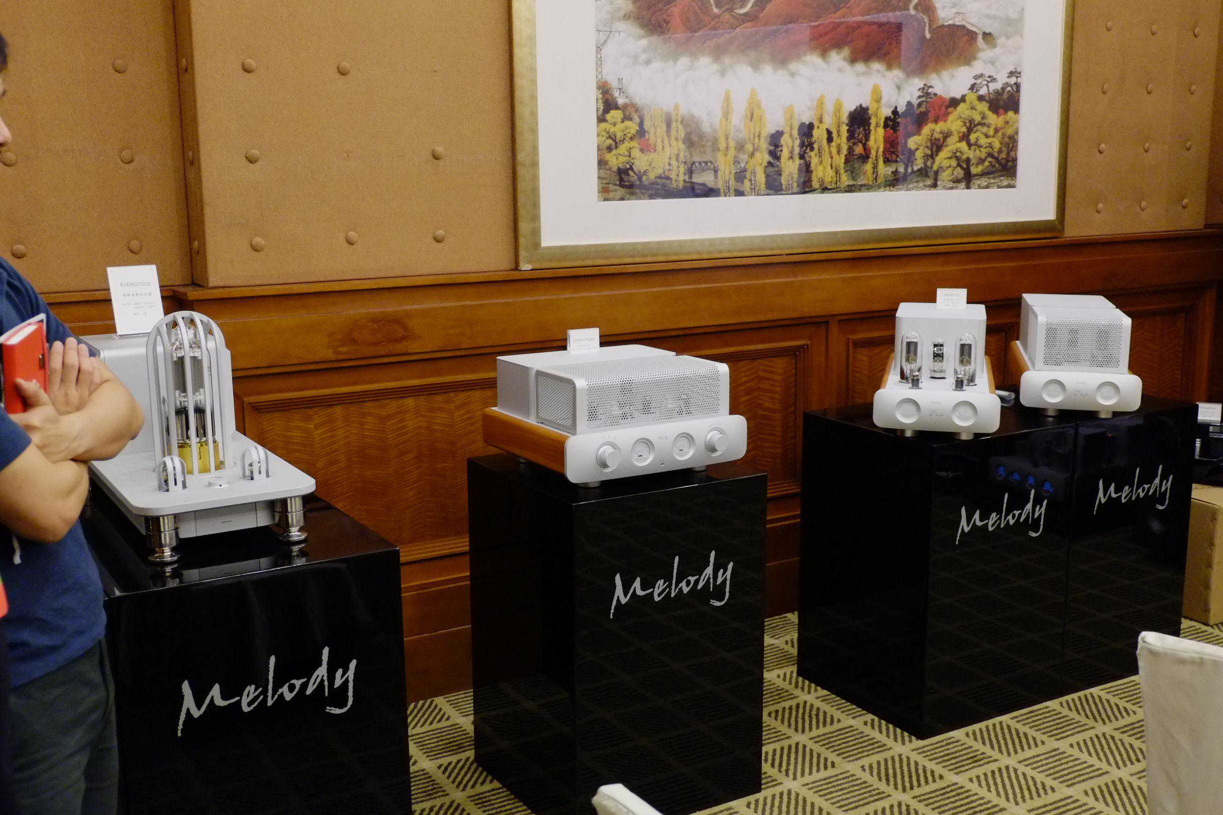 唯一让三耳君两顾展房等候皇帝位试听的组合。美国BricastiM1解码前级一体机搭配M28单声道后级,驱动ATCSCM50ASLT喇叭在整个展会中声音独树一帜,精准的声音还原和凌厉的动态非常突出。坦然,这套系统当然未算展会中素质最强大的,但确实被向来Hi-Fi和专业类音频器材同好的三耳君所喜欢,在展会中游走多时再听这种声音会感觉冲击力更强。