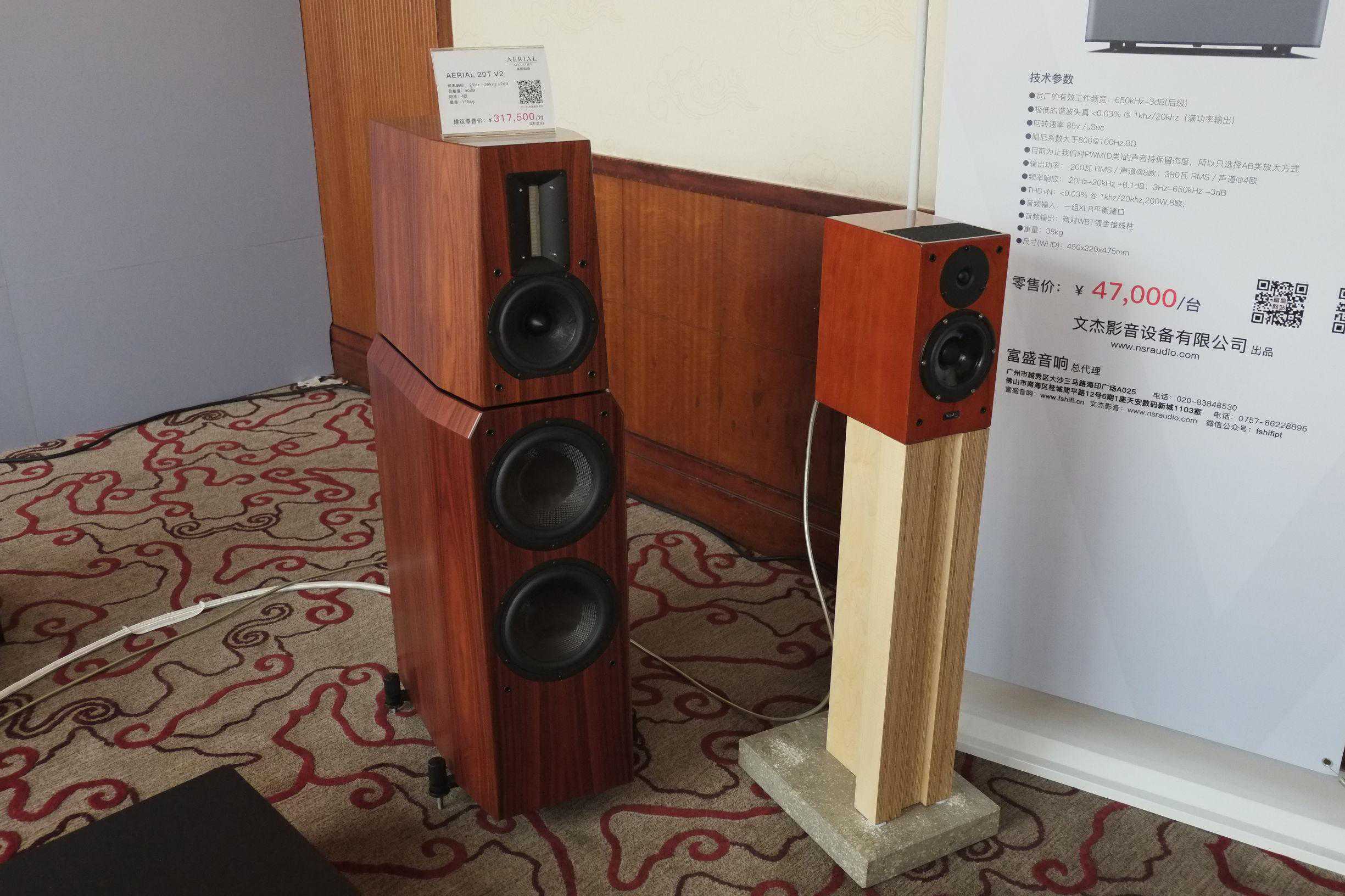另一边厢则主要展示四件独立板岩箱体,7个单体构成的FISCHERFISCHER旗舰音箱SN/,由AUDIONET的PREG2前级和AUDIONET的MAX单声道后级驱动。前方同样是板岩箱体的书架箱型号SN/SL70,能量感也让人惊喜。