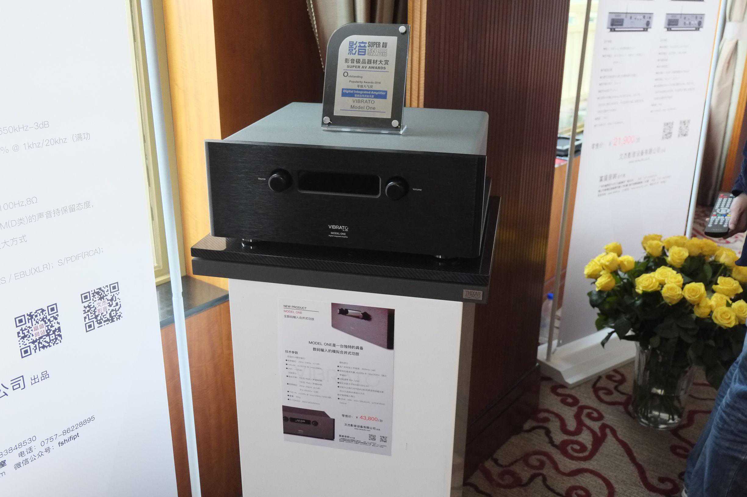 富盛其中一个展房以自家品牌VIBRATO为主角,新推集DSD解码、数字音乐播放及功放于一身的旗舰一体机NMA,NDP解码前级、NS380后级以及主打性价比的书架箱SWING。当然还有VIBRATO的开山之作MODELONE。