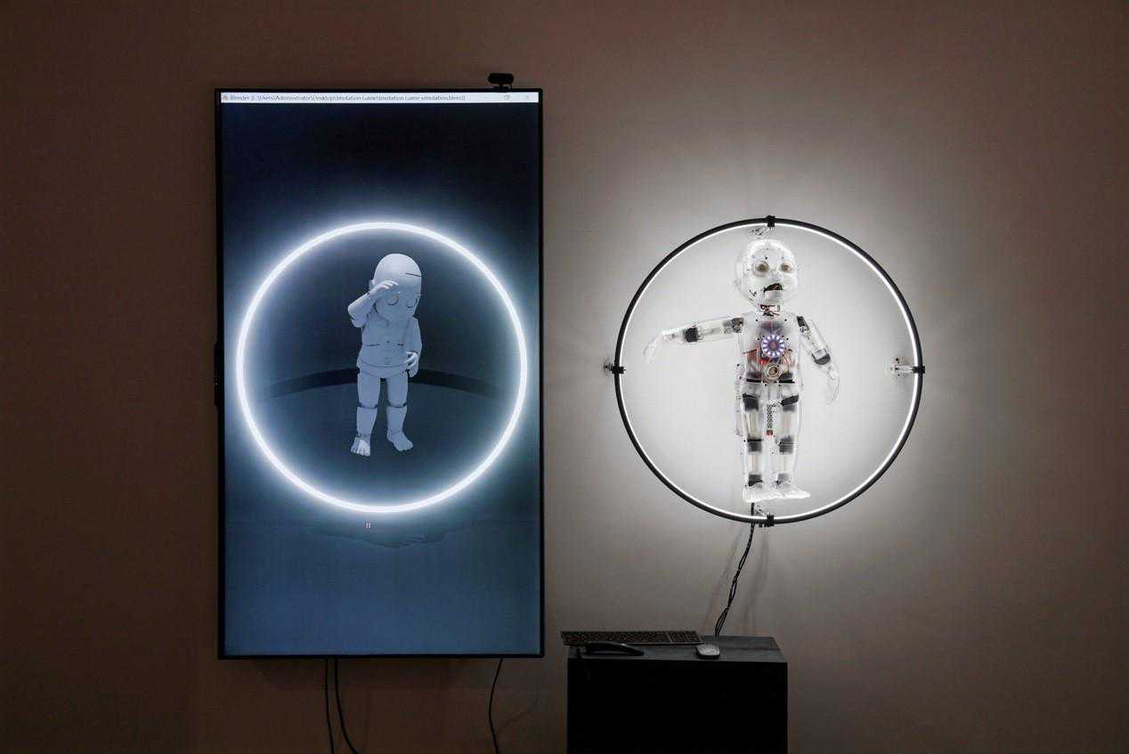 李杭,《模仿游戏》,“人机合一:机器人艺术时代”,展览现场,798CUBE,2024。