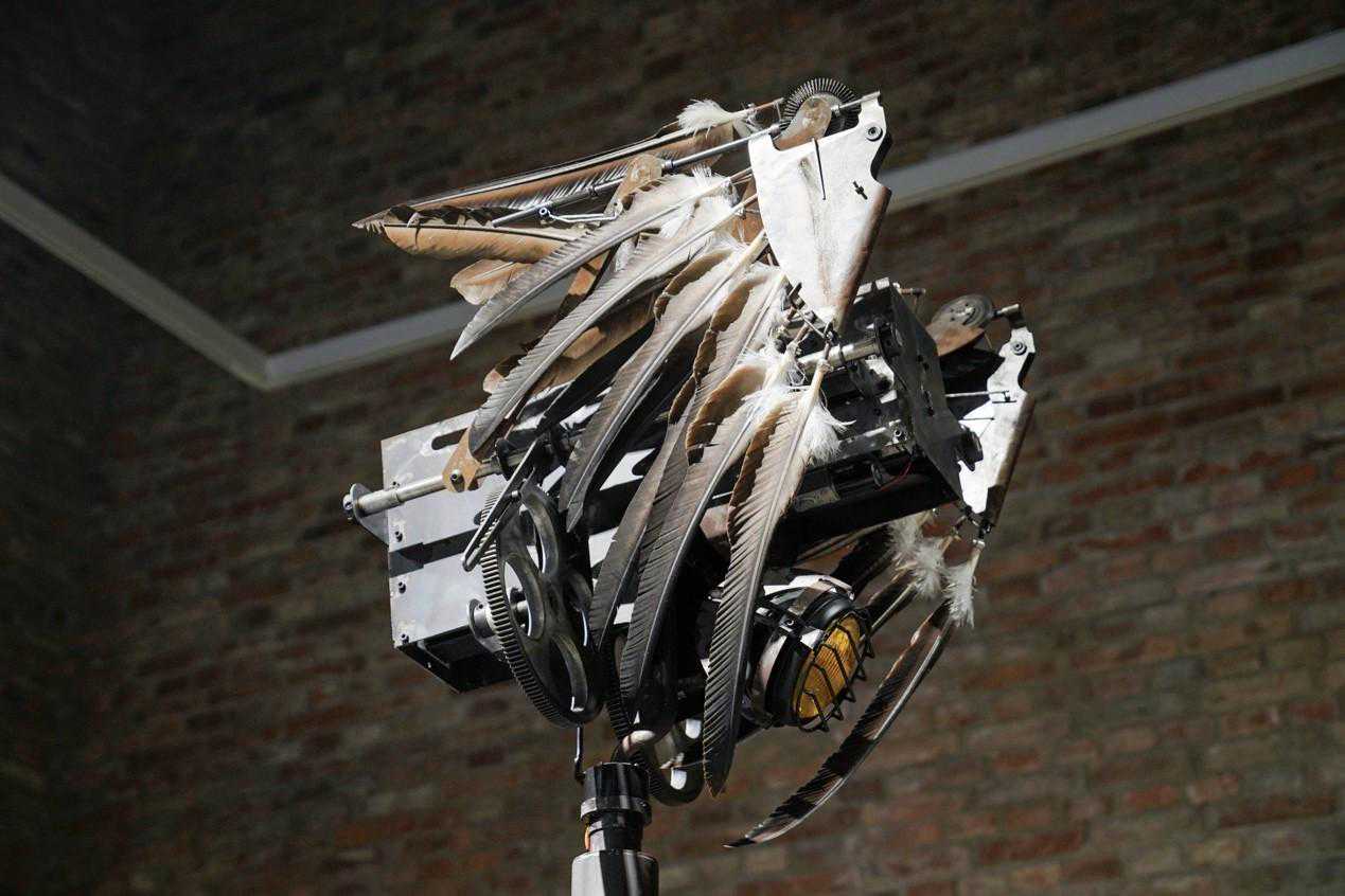 刘畅通过灯、羽毛、仿生手、金属手臂等机械装置作品,将有机的生命体嫁接在无机体上,以最直接、原始、自然的面貌探讨人类与机器的主客体关系。