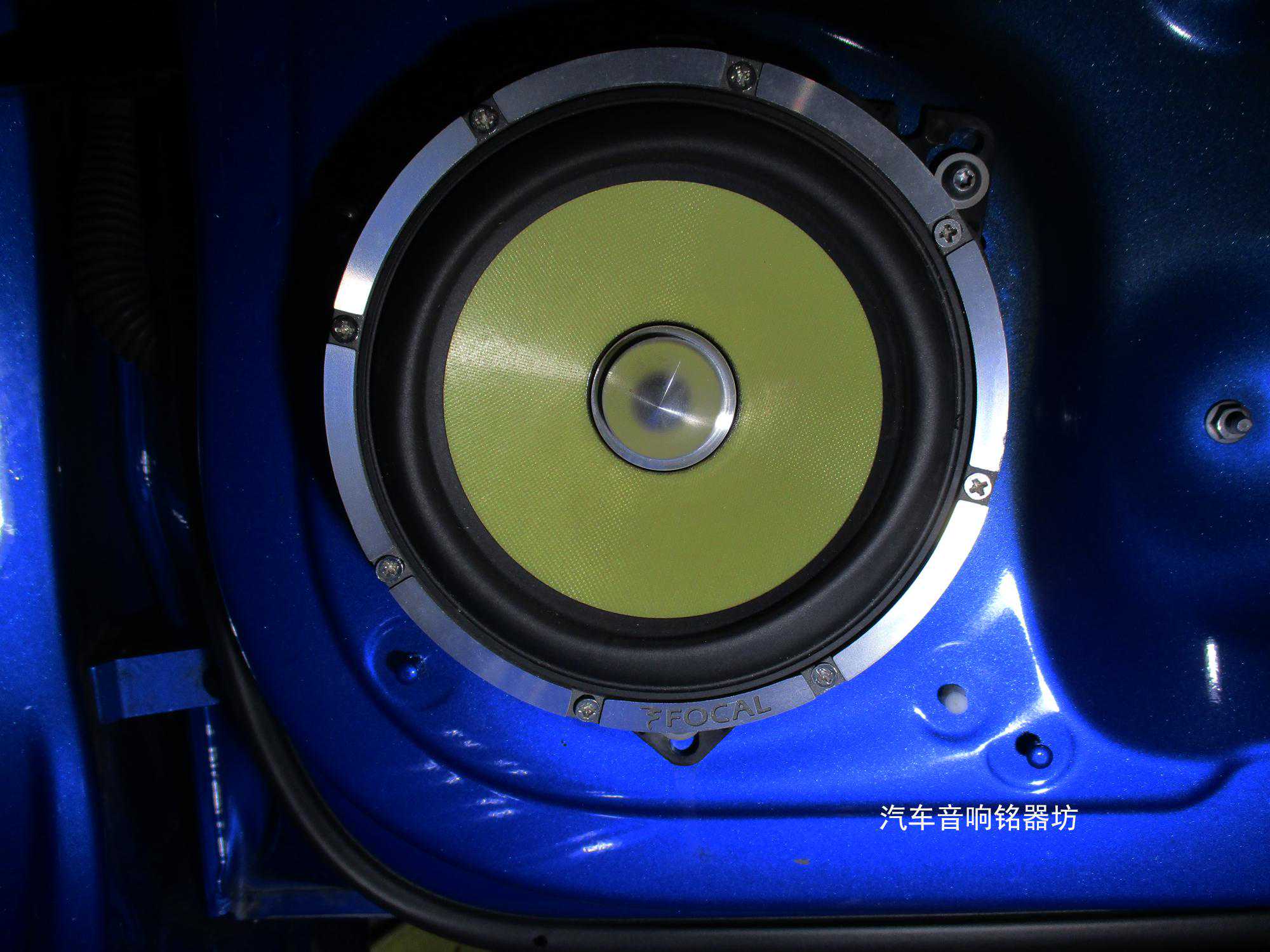 法国劲浪165KRX2中低音通过定制的喇叭垫圈牢固的固定在奥迪原车中低音喇叭位置: