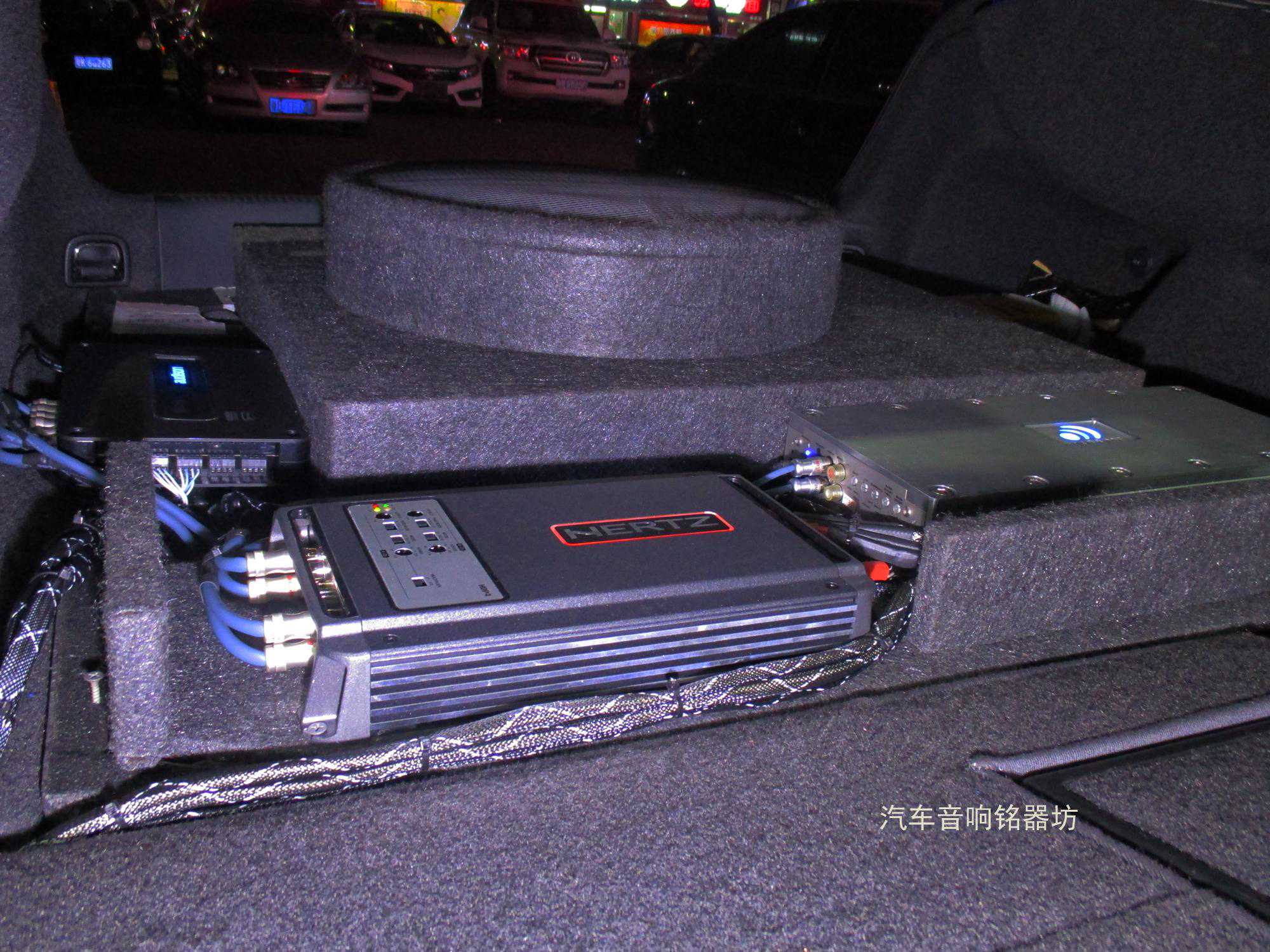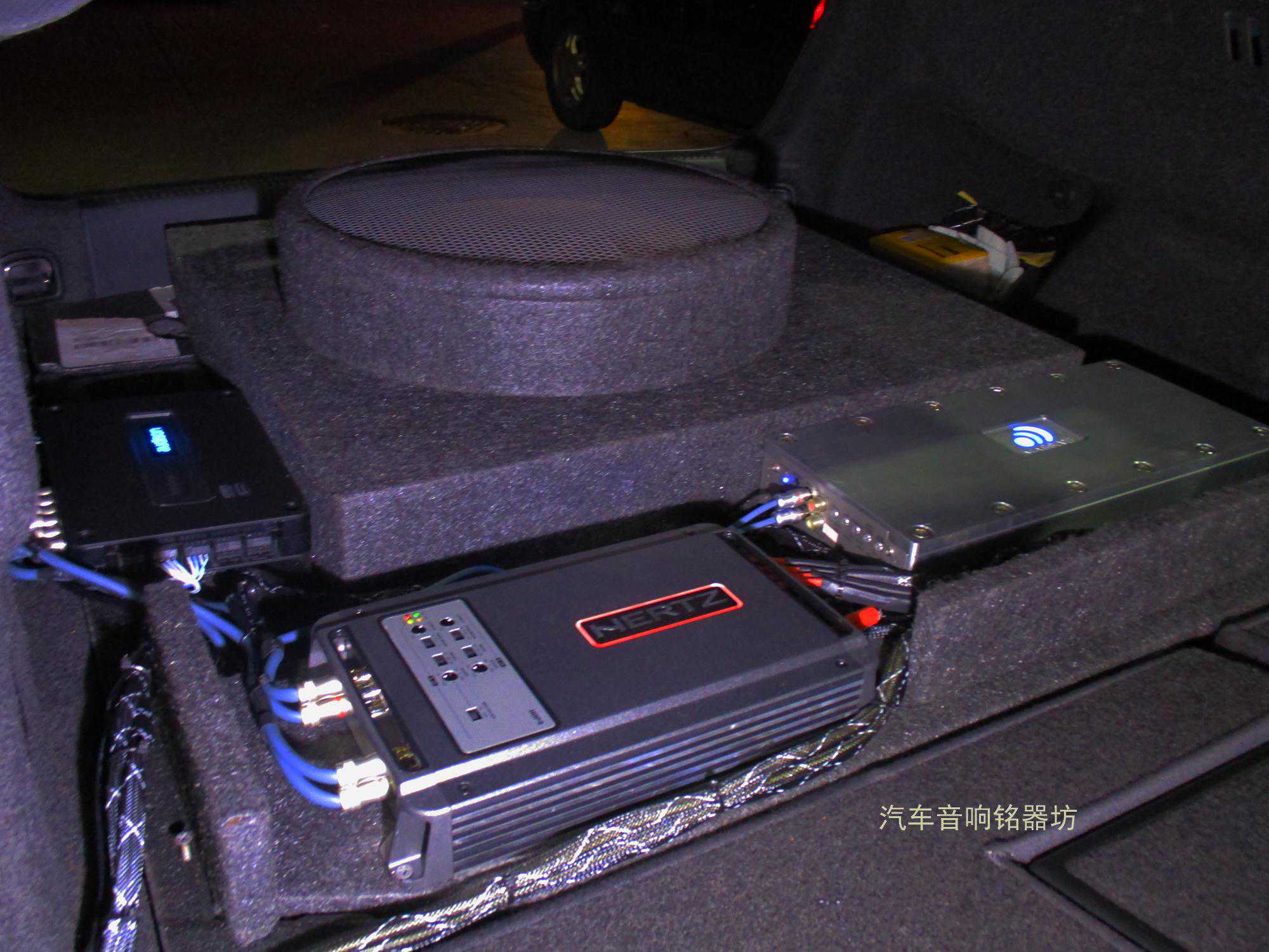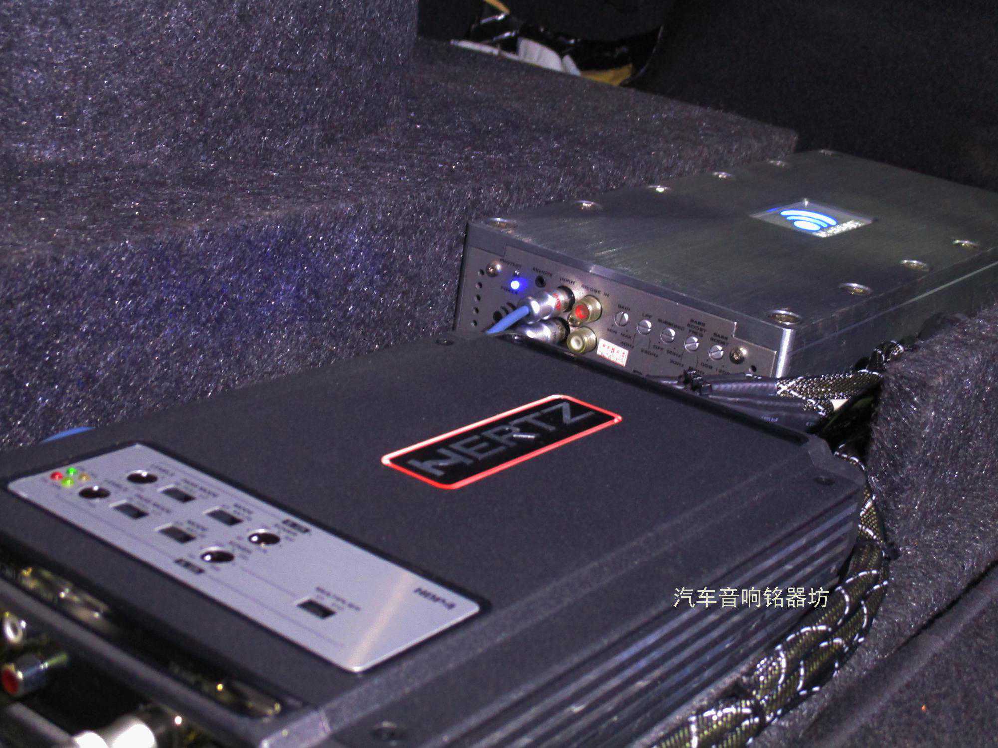 合理运用空间:意大利赫兹HDP4与大功率低音功放和欧迪臣BITONE处理隐藏式安装在备胎附近: