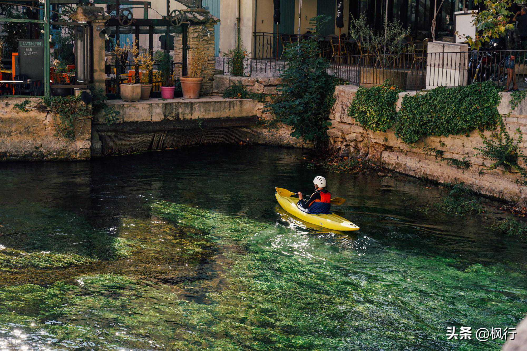 大树下,是几家咖啡厅和礼品店。不远处,一座石桥横跨在泉水之上,这泉水就是索格河(RiverSorgue)的源头。
