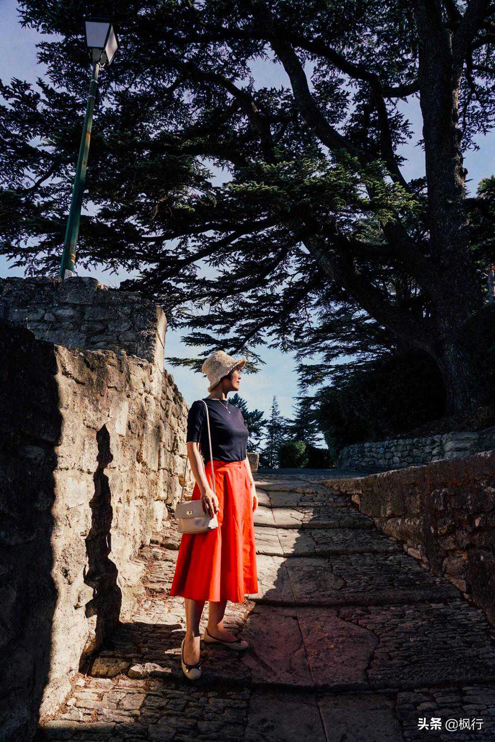 盘旋的石板路将游人引向山顶,镇子的最高处,屹立着由上百年的雪松树守护的古老教堂。