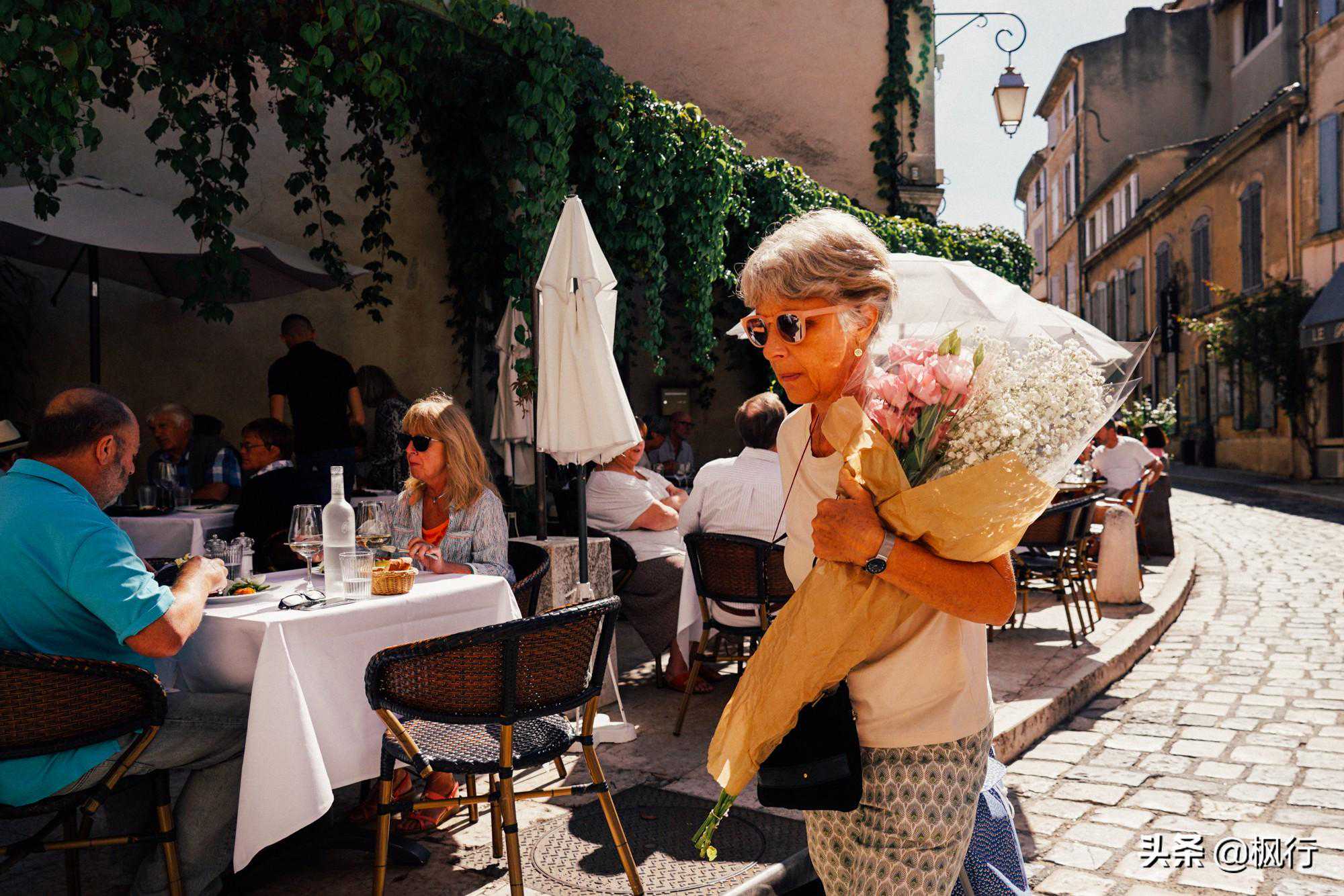 金发的老太太身穿白群和粉色开衫,优雅的吃着面前的海虹,银发的老太太手捧明媚的龙胆和满天星,踏着高跟鞋匆匆而过。每个人都可以在这里找到舒适的姿势,享受上帝赋予卢尔马兰的优势:美丽与自在。