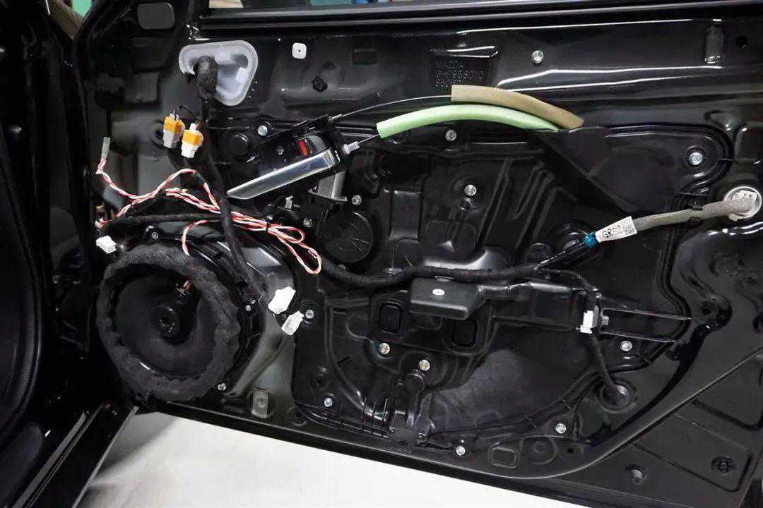 方案确定后,改装技师开始着手安装。原装BOSE系统的前门,装的是20CM的大型低音喇叭,UNIT-N70R的直径没那么大,所以,改装技师用桦木制作了一个内挡板,将UNIT-N70R固定好。如此既能保证换装后的喇叭的稳定性,也不会因为大音量的震动导致松动等问题。