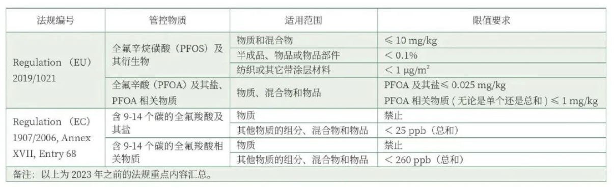 2022年12月,生态环境部公布《重点管控新污染物清单(2023年版)》,自2023年3月1日起施行,其中包含的PFAS相关规定。