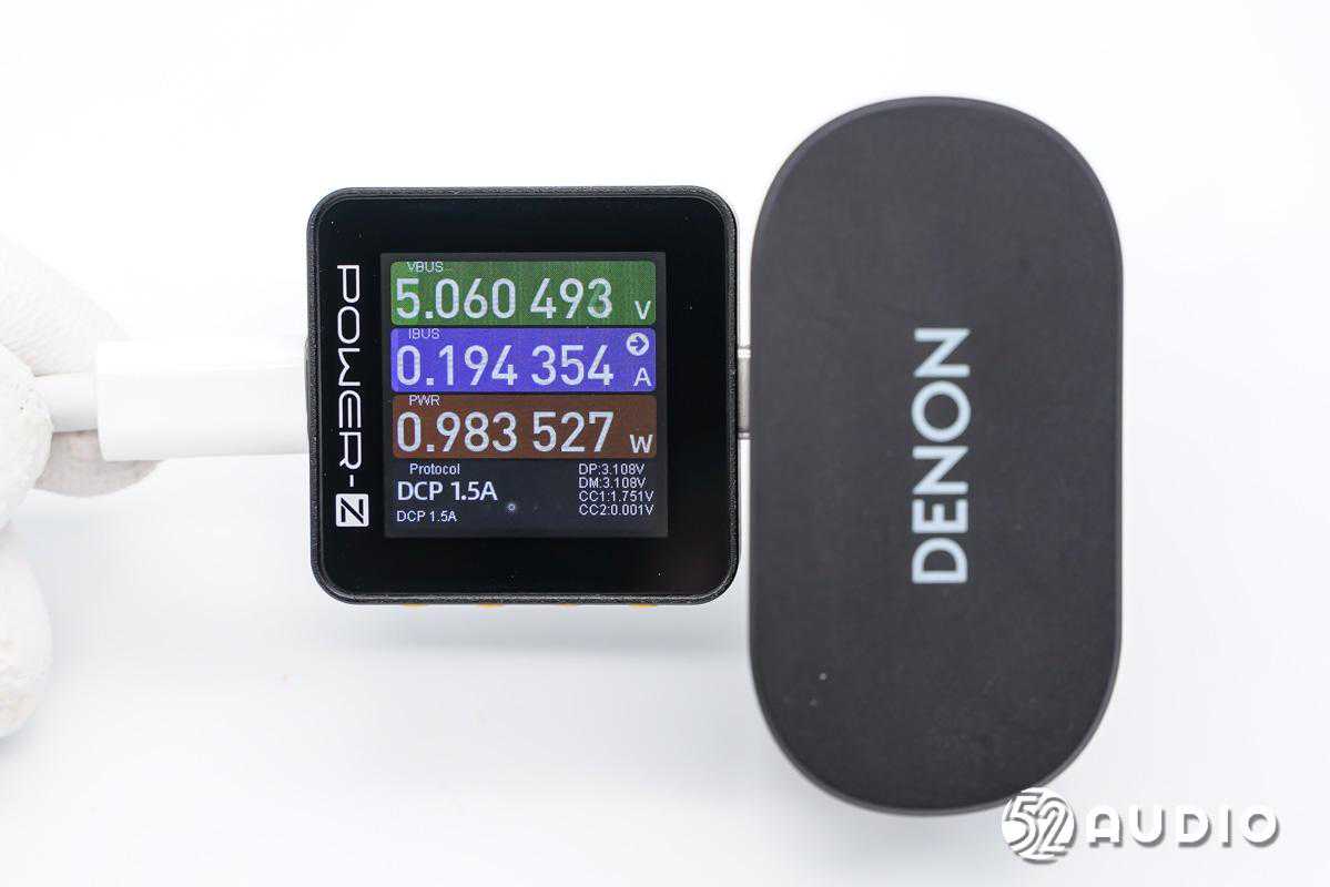 我爱音频网采用CHARGERLABPOWER-ZKM002C对天龙DENONAH-C830NCW真无线降噪耳机进行充电测试,输入功率约为0.98W。
