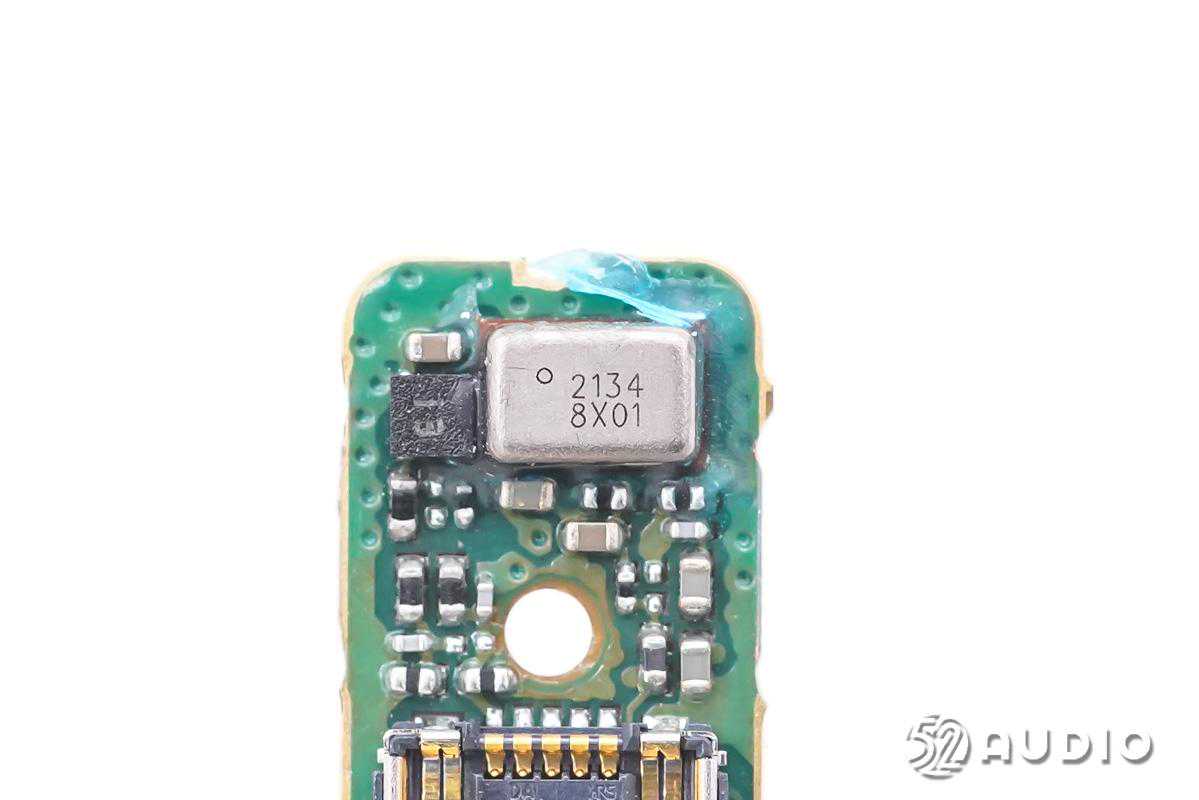 主板另外一端同型号的前馈降噪麦克风特写,用于拾取外部环境噪音。