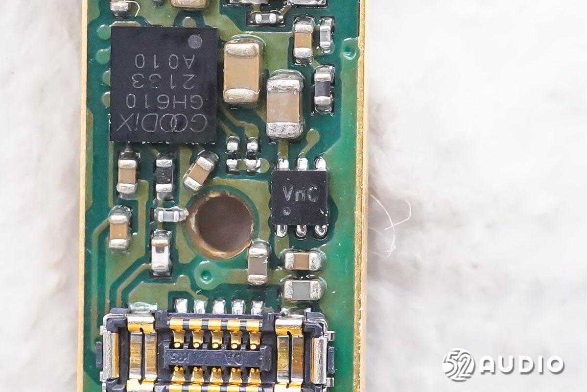 耳机内置恒泰科技43mAh软包扣式电池;搭载椭圆形的11x10mm动圈单元,提供强劲低音、广阔的空间表现力和动态;内置三颗新港电子MEMS麦克风,用于混和主动降噪功能和高品质通话。耳机主控芯片为恒玄BES2300蓝牙音频SoC,支持蓝牙5.0,全集成芯片实现高音质和主动降噪;汇顶科技GH610电容式入耳检测及触控2合1芯片,用于入耳检测和触摸控制。PCB金属化包边,抗干扰能力更强。