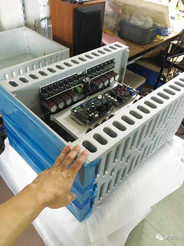这套四分体的功放,光是未加工的铝合金重300公斤,加工后重量仍有220公斤