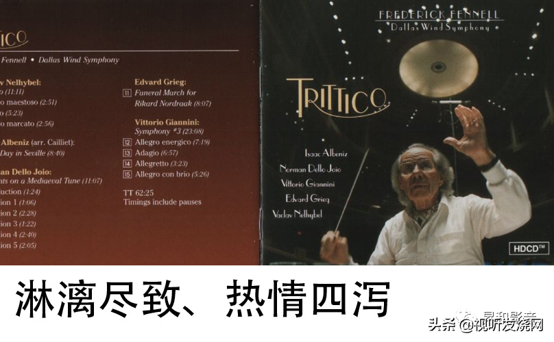 比如重播RR唱片公司由芬内尔指挥DallasWindSymphony达拉斯管乐交响乐团演奏的那张经典的试音天碟《Trittico‘发烧老祖’》,专辑中五首现代派作品在老祖棒下发挥得淋漓尽致、热情四泻。第1段的《Trittico》从一开始便迸发出极具冲击力和澎湃动感的效果,整首音乐紧凑的节奏不断呈现出紧张的主题高潮,C49呈现爆棚效果似乎不脚软,军鼓、大鼓、铜管、碰铃等乐器呈现金碧辉煌的光泽,低频深沉有力,丝毫不拖泥带水,高音也不生硬,而是能够完整地呈现出各种乐器的音色质感,音场展开深度与宽度完全超出了试音室的范围,乐团层次鲜明、每个声部乐器定位清晰稳定,真是音量越大越是过瘾。