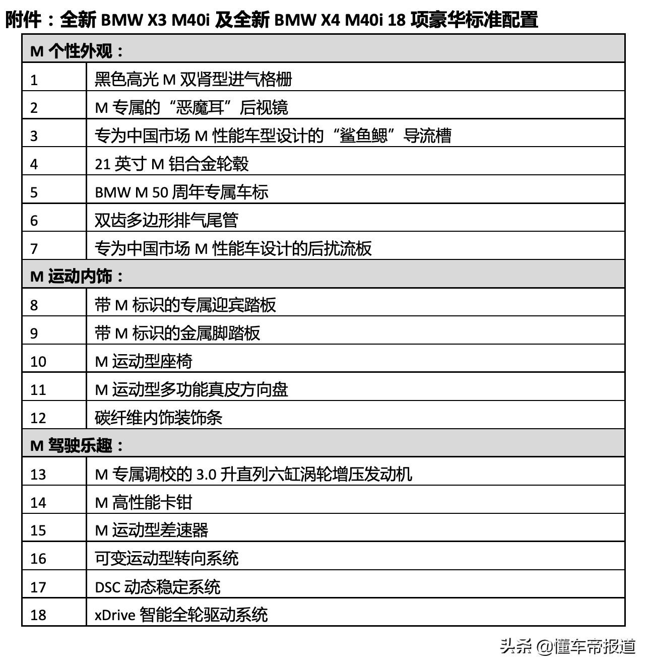 宝马X3M40i、X4M40i中国市场标准配置