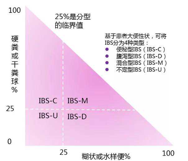 这四种类型可根据粪便中硬便和水样便的比例是否超过25%来区分。