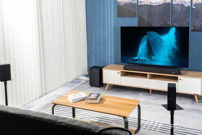而低音炮部分能则采用了6.5英寸的低音单元,功率来到了100W,并采用的向下发声的设计,在客厅环境中带来的低音效果绝对不容小觑。