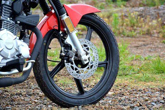 作为一款强调实用性的车型,YBR150Z采用了通过性更强的前后18寸轮圈搭配,并使用了胎纹更深的越野型轮胎;它的前轮胎规格为2.75R18,后轮胎规格为90/90R18。