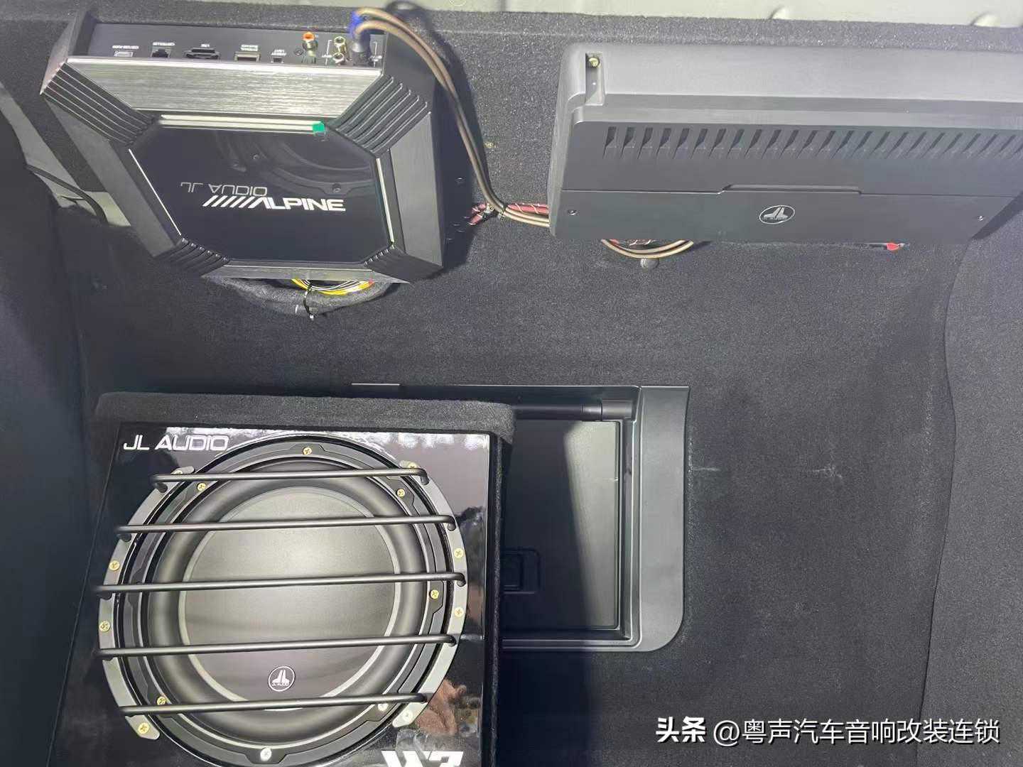 接下来,改装技师将【JL10w3v3-4】安装在后备箱它的低频下潜有力、低音动感十足,能够使音乐的听感真实,氛围感更强。在音源端,技师还为汽车添加了一台先锋【JLRD1000/1】功放,为喇叭提供充足的功率输出,使声音表现更加清晰、富有质感。