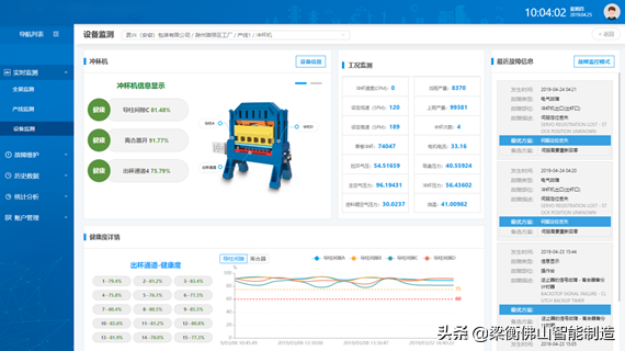 迄今我们针对两片罐生产线实施的智能化升级主要围绕两个方向:一是主要设备的PHM(故障预测与健康管理),包括基于PHM技术的过程关键质量参数的动态跟踪;二是主要设备的现场决策系统,即专家智库系统。二者旨在通过产线大数据智能分析最终提升两片罐工厂的效益,降低综合性成本。就它们所能带给客户的价值而言,前者可以通过量化让客户直观感受,而后者虽不好量化呈现,有时却至关重要。下面将介绍金属包装连续生产线关键设备PHM故障诊断案例,并对其带给用户的价值进行分析。