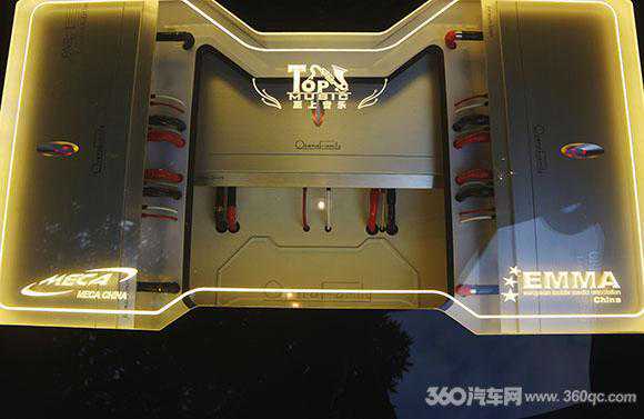 全新的奔驰E级重新定义了商务中大型车,歌剧世家限量版三分频定义了国产Hi-汽车音响的高度,两者互相结合构建一套极致音响系统。中控台翻盖储物盒内巧妙隐藏收纳日本阿尔派305S媒体播放器,与之相连是一台阿尔派S690多片式换碟机提供高品质CD音乐。改装团队再用一台阿尔派C800控制器遥控H800顶级解码器,控制和优化音源输出效果。