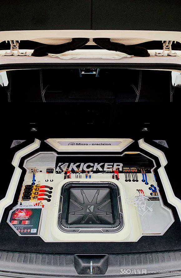 前级音源改装选用阿尔派DVI-9990E和PKI-H9990解码,前声场喇叭卓美银钻系列三分频六单元设计,XXT30W高音倒模安装在A柱,XXM325中音倒模安装在车门三角位,XXM650中低音倒模安装在门板位。推动功放则用卓美红钻系列,一台四路推高音和中音,一台二路推中低音,两款AB类功放沉稳厚重声底,韵味十足。