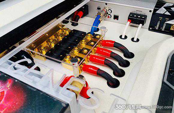 这套混搭系统设计,追求极致和美观恰到好处的平衡。好源头的主音源来自Hi-发烧级日本先锋ODR哑巴主机,倒模在中控便于随时操作。前声场德国海螺7系三分频套装,用三台创世纪BEMK2限量两声道功放全主动驱动,高音和中音A柱倒模,为更好平衡听感,左右声道指向性角度一致,同时与车门安装的中低音单元有自然平衡衔接。