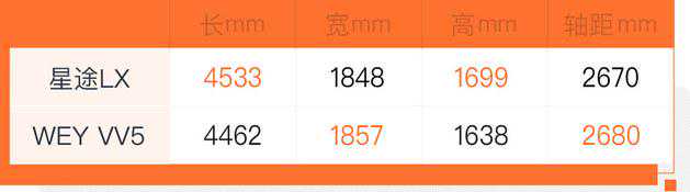 2、这款车的长/宽/高分别为4533mm/1848mm/1699mm,轴距为2670mm,相比竞品WEYVV5在车身长度及高度上稍有一定优势。