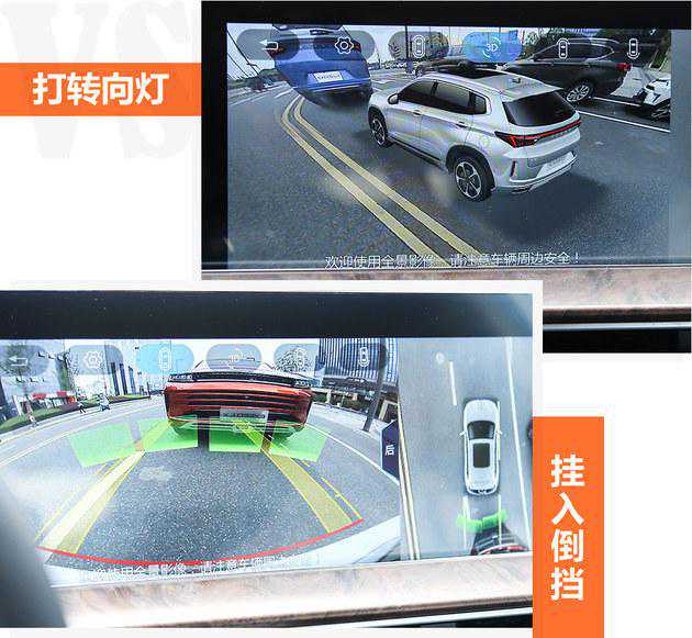 这款车所搭载的360°全景影像触发很快,无论是打转向灯还是挂入倒挡都能及时响应。另外,通过雷达等设备可以让这款车探测到周围行人及车辆状况并用醒目的大色块显示在屏幕中,提醒驾驶员加倍注意。