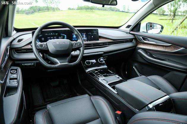 2、内饰大气。这款车的中控台与车门面板连在一起,可以增强乘坐的包裹感,不过得益于和外观一样采用了很多横向线条的设计,整车内部空间并不会因为包裹感的增强显得很窄,反而看起来非常宽敞和大气。双12.3英寸悬浮大屏下方以及门板中央的仿木饰板无论手感和视觉效果都很不错,细节做得也到位,让豪华质感也有所提升。