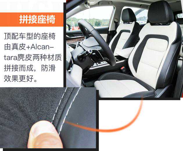 需要注意的是,这款车顶配车型的座椅由真皮+Alcantara麂皮两种材质拼接而成,而我们试驾的次顶配则采用的是单一皮质座椅。