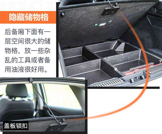 尤其值得夸奖的是,后备厢下面还有一层空间很大的储物格,放一些杂乱的工具或者备用油液很好用。储物格下面是非全尺寸备胎。
