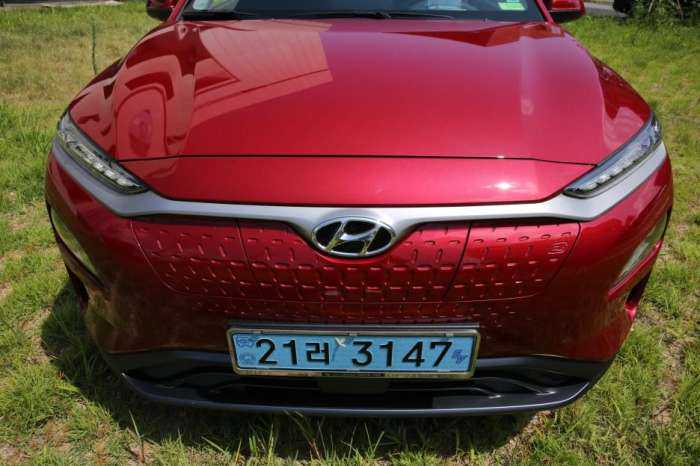 车身后面能够看到electric的标识,韩国目前也在把汽油车与纯电车进行车牌的区分,蓝底黑字的车牌表明它是一辆纯电动车。