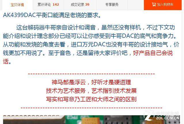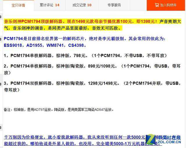 前面提到绝大多数的国内HiFiDIY产品都有一个共同特点就是胡吹乱夸,之所以敢这么做,其核心就是抓住人性中贪便宜的弱点。那些山寨产品就不用说了,宣传伎俩自然是让你觉得花原装产品三分之一甚至更低的钱就能享受到从内到外和原版一样的产品;而那些非山寨的DIY产品则重点强调在堆料上,用了什么牛X的芯片、什么高端电容、什么顶级晶振、什么发烧线材等等,给消费者营造出一种用料不惜血本的假象,同时也使消费者相信好的元器件一定能产生好声音。