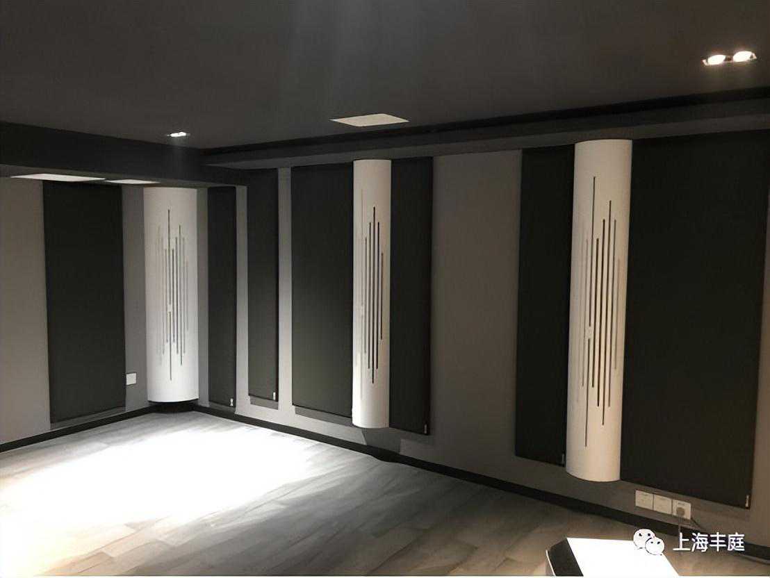 一个优秀的家庭影院除了专业的影音设备之外,声学处理也是必不可少的。整个墙体都铺设了吸音板和三维扩散体,实现整个房间吸音和扩散的均衡设计。同时,为了避免产生过多的低频驻波,我们在屏幕两侧及后墙设计了半圆柱状的低频陷阱,这样一来解决驻波问题。