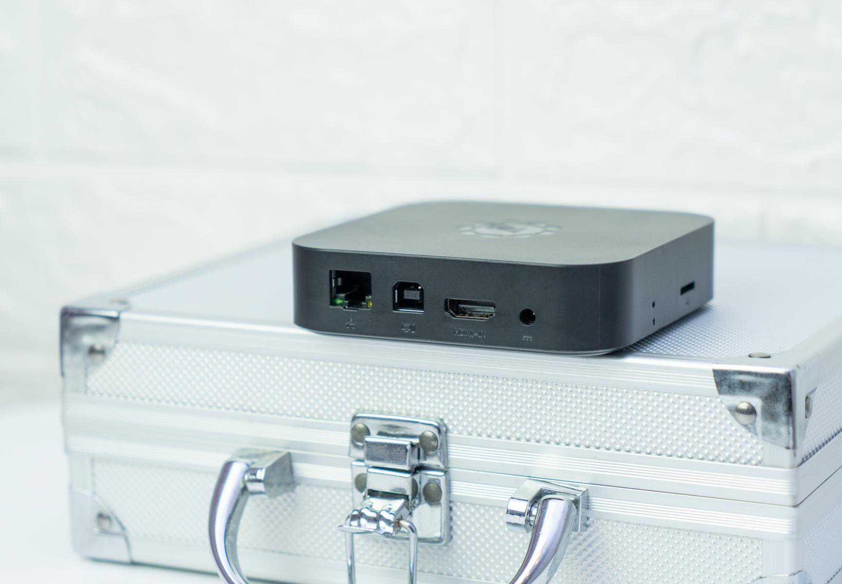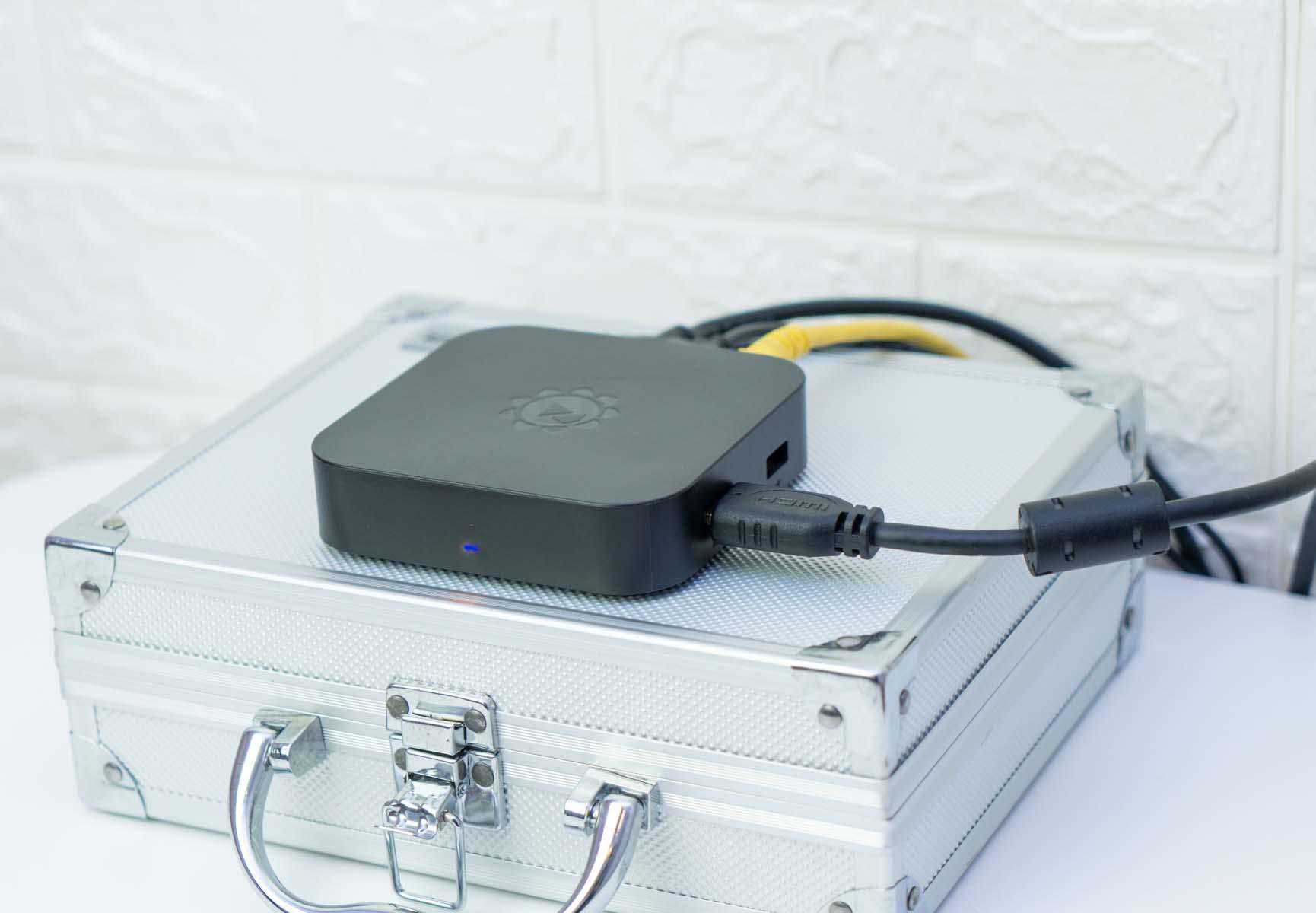 向日葵控控A2是一个黑色的小盒子,它的接口比较丰富,网口用来接驳外网,USB上行口用来接入受控机器,HDMI则接到受控主机上。HDMI接口采集受控机器的图像信息,经由加密网络在远端显示出来,通过通过USB上行口可以模拟出键盘鼠标进行输入控制。