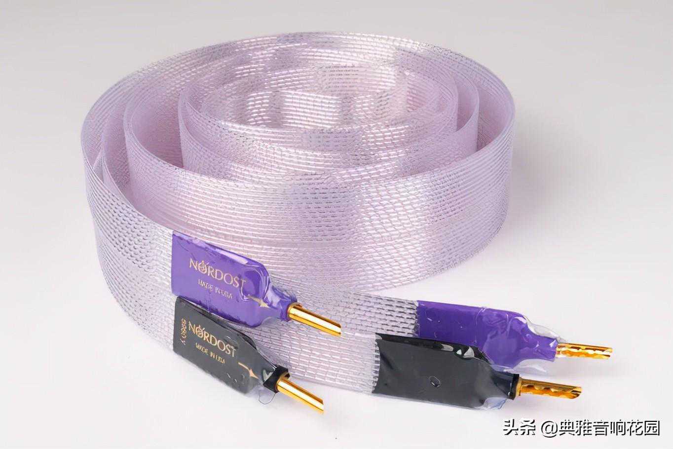 不算太粗的喇叭线,却要价12万5,怎么这么贵呢?因为人家特别啊!Nordost的扁平结构不是只是把线材拉宽做扁而已,那是有其目的的,为的就是要让线材具有低容抗、低感抗的特性,好避免音染。
