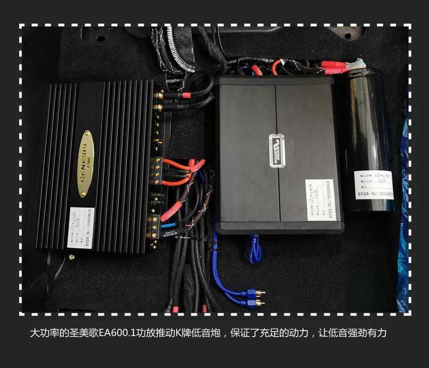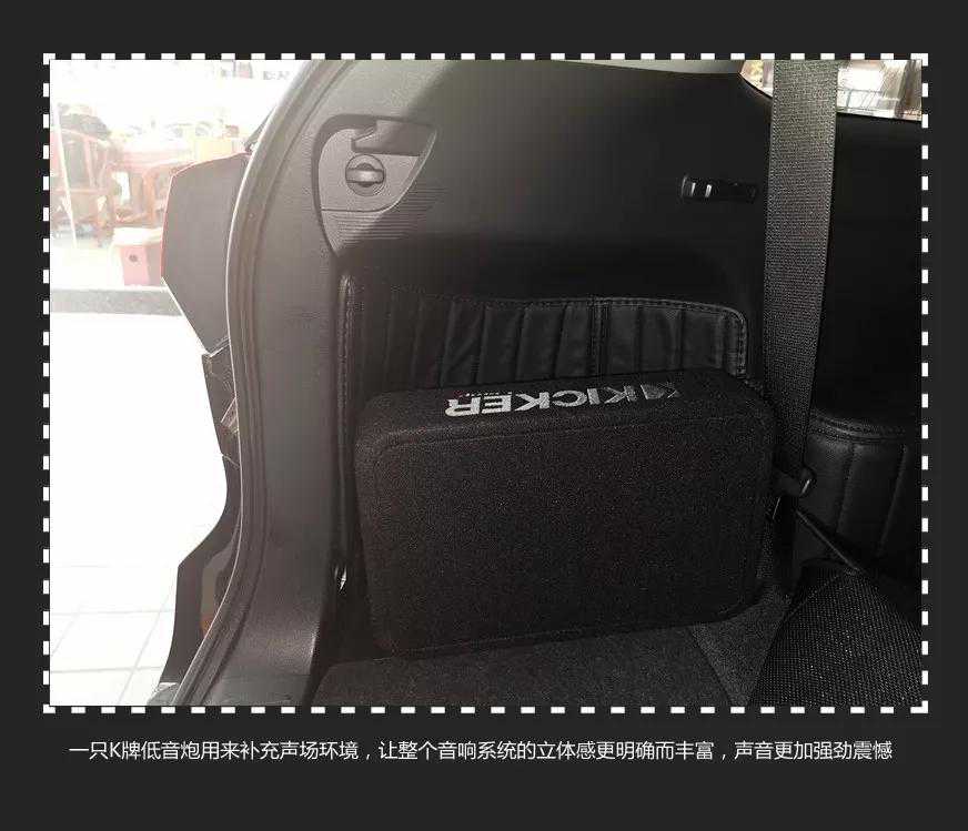 最后加装一台K牌低音炮来补充低频的不足,它可以增加低音部分的不足,它可以增加低音部分的下潜力度,让音乐在低频的表现更具有张力和弹性。