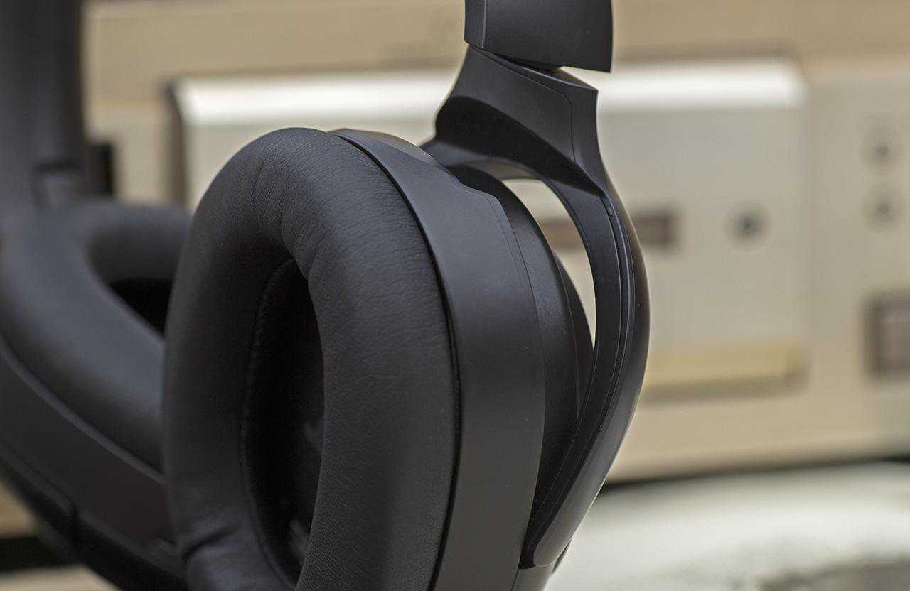 AW-83采用蛋白皮+记忆海绵的设计,可以很好地包裹住耳朵,而且也可以增强耳机的物理隔音效果。在佩戴的时候也感觉不会压耳,唯一不足的地方就是容易闷热,如果是像飞利浦SHP9500那样的网格布耳罩就舒服很多,但隔音效果就差远了,毕竟鱼与熊掌不可兼得。