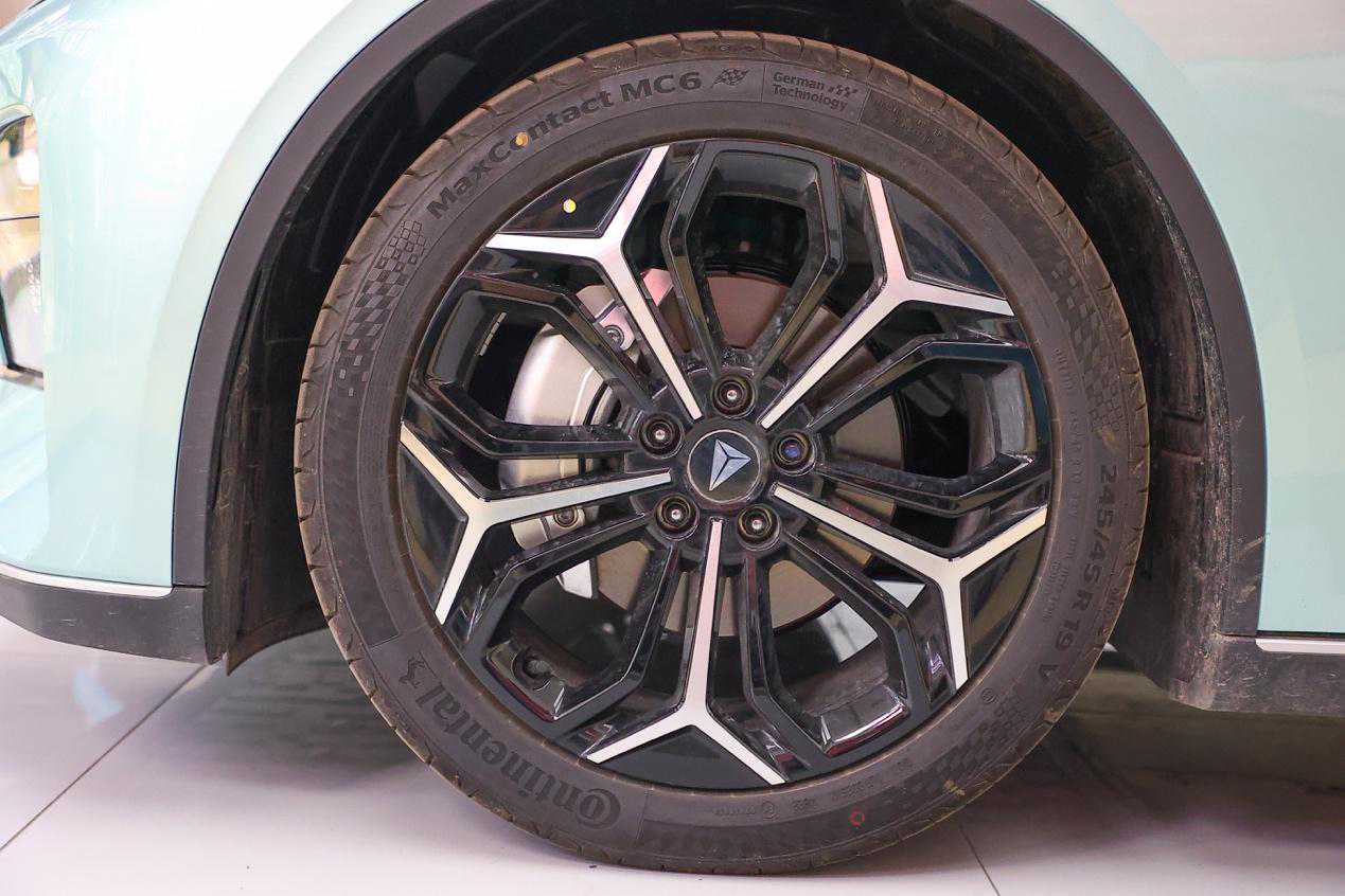 新款深蓝SL03外观最大的变化体现在车身侧面。首先,就是这个全新样式的19英寸轮毂,Y字形的机械设计⻛格使其视觉效果更加立体、运动。其次,新车的侧裙饰条也进行了优化升级,银色面积进一步加粗,饰条的宽窄变化更贴合⻔板边界形式,看起来更加舒适。