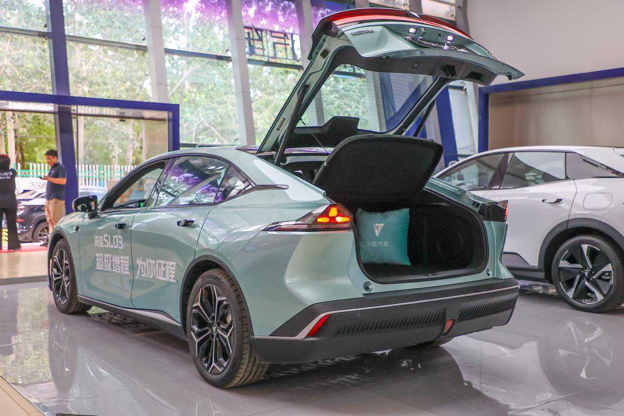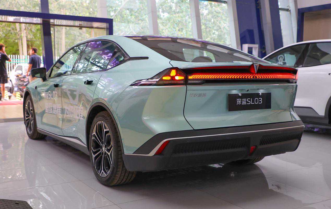 车身尾部,深蓝SL03换装了最新的黑色保险杠,掀背式的车尾设计不仅有着不错的实用性,同时视觉效果更加拉风。新车搭载的星焰贯穿式尾灯点亮后极具辨识度,整个车尾看上去立体又饱满。