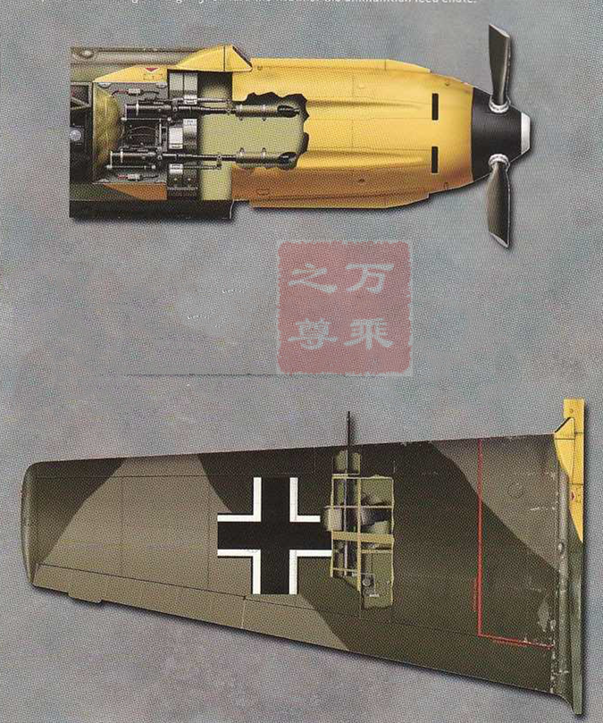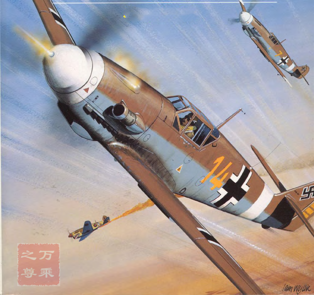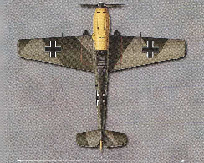 BF109E-3武器装备:两门20mmMGFF(Oerlikon)火炮,射速60发/分钟;两门7.9mmRheinmetalBorsigMG17机枪,射速1000发/分钟,枪炮安装在两侧机翼上,在地面调节左右两侧武器的夹角,使其弹道在飞机正前方的一个固定距离交叉聚集。这样做虽然能部分实现集中火力的效果,但是弊端也是很明显的:只有和敌机的距离保持在一定范围内的条件下,才能够在其身上倾注所有的火力。这对飞行员的计算能力和时机把握能力提出了相当的挑战。尤其在2架战斗机对头攻击的条件下,相对速度超过了音速,要让飞行员估算出适当的时机扣动扳机,使交叉弹道击中对方,这并非常人能够完成的任务