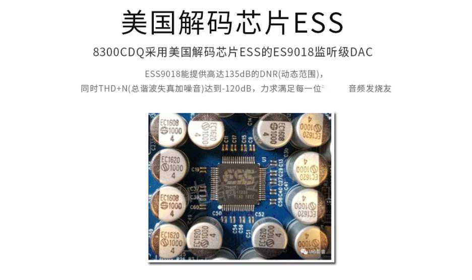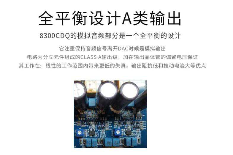 8300CDQ的模拟部分采用全平衡分立元件放大电路,具备低失真、低输出阻抗等优点。而最终声音重放的听感上,具备优秀的解析力和通透度以及凌厉的动态等等优点。
