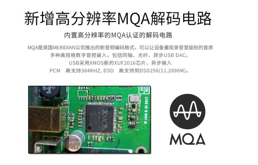 解码芯片采用成熟而优秀的9018,能有效硬解PCM384以及DSD256的数据文件,除此之外8300CDQ还具备MQA解码,是不是感觉就有些高级感了呢。另外设计师还使用了独家的串联式异步主时基降噪处理,这才是核心技术,它能有效衰减并隔离时基误差(jitter)引发的数位噪讯。