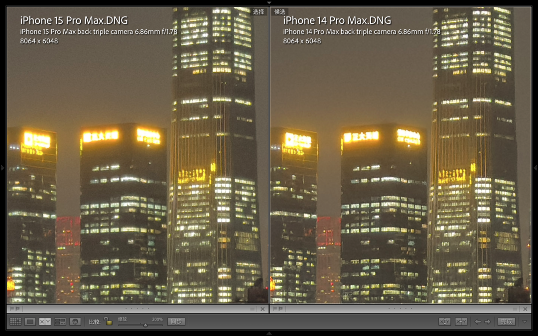 放大200%细节,左:iPhone15ProMax;右:iPhone14ProMax