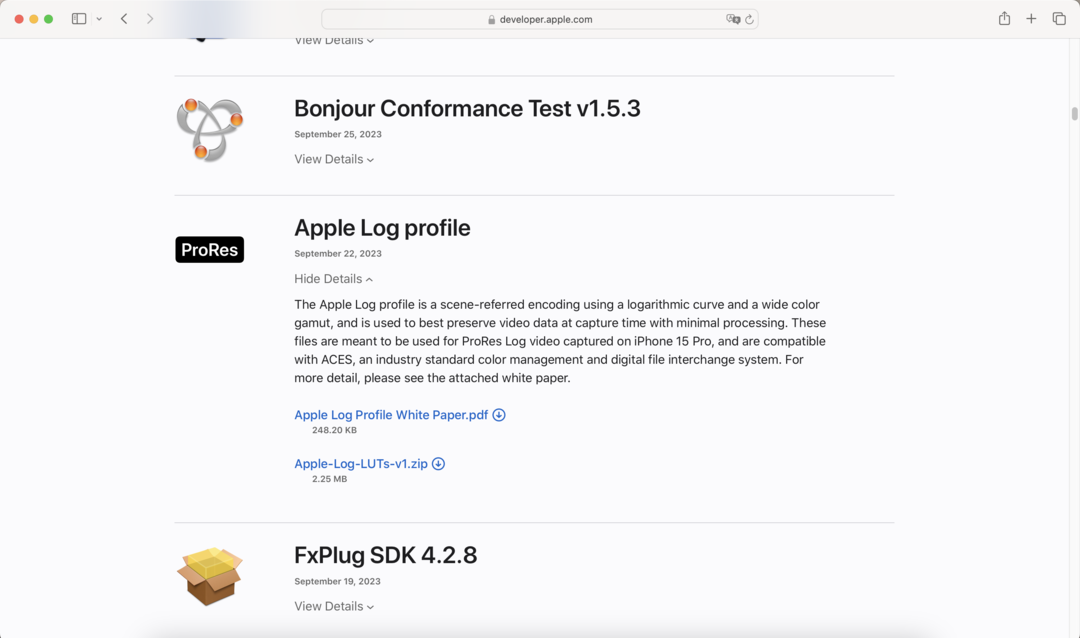 2.)如何还原AppleLog色彩还原Log格式其实方法有很多种,最简单的就是使用官方给出的LUT文件进行色彩还原。这次苹果官方其实也给出了对应的LUT文件,只不过隐藏的比较深。