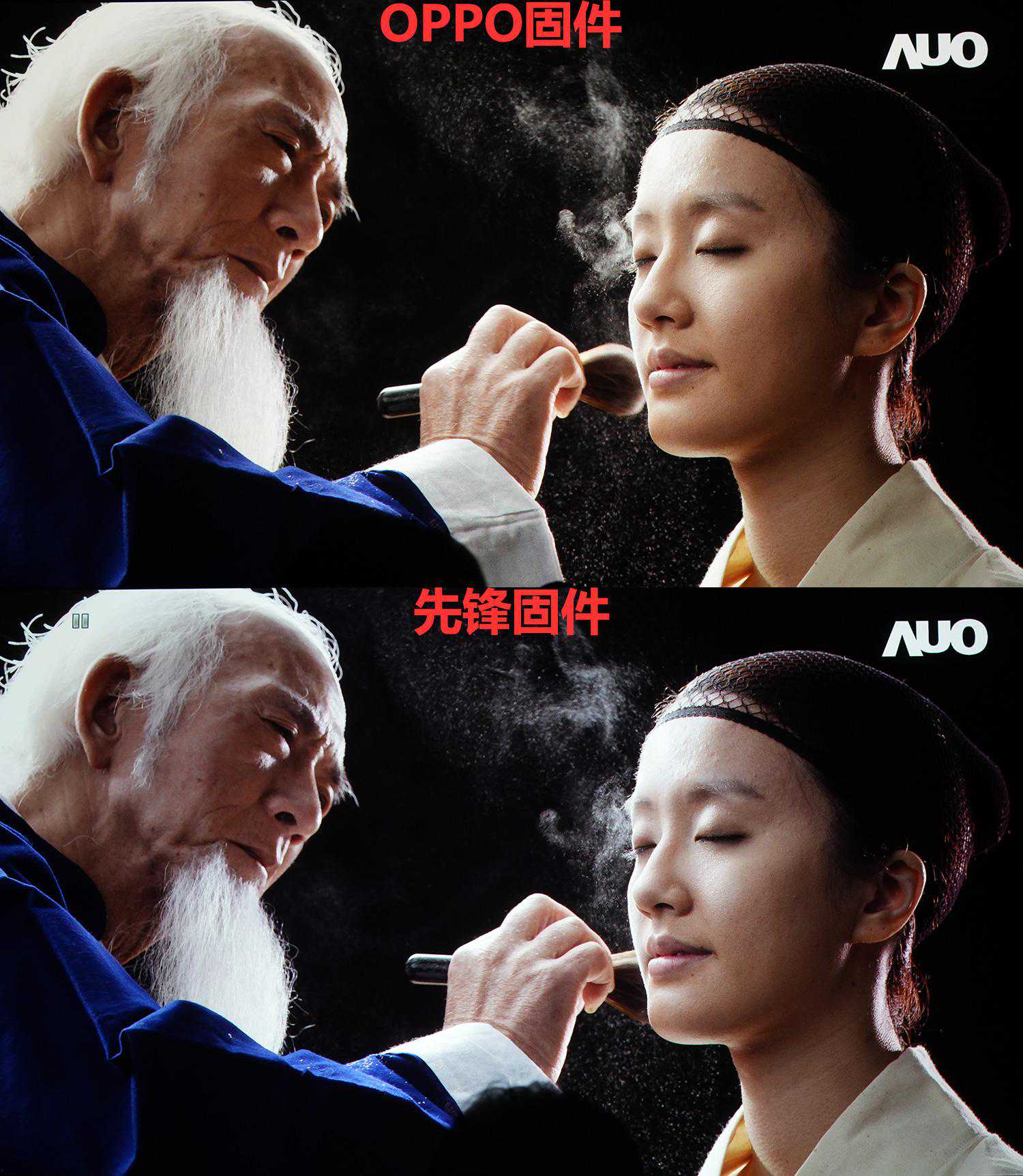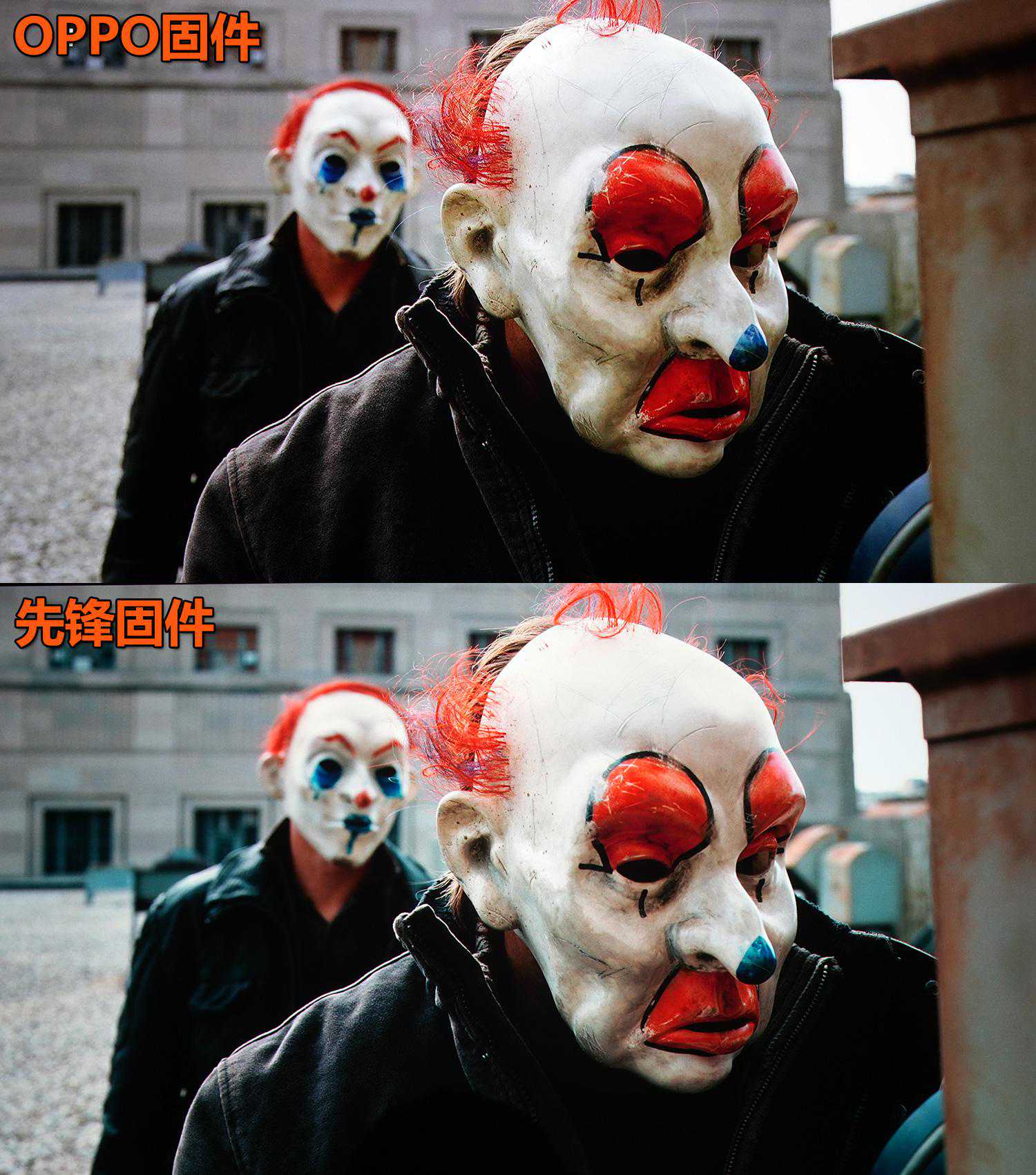 上面这张也能看出来,注意面具眼睛上红色的部分,OPPO饱和度更高,但红色中的纹理会少一点。而先锋固件颜色饱和度低一点,但红色中的纹理更多。