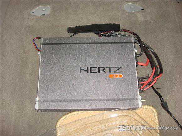 赫兹高音就装在了原来的位置,有专用支架。孔再大也是浮云,安装现有市场上的高音,完全适合。新加的赫兹功放就装在副驾驶座下面了,这样做也是为了节省空间。定身制作的低音箱体采用的也是赫兹的10寸低音喇叭。